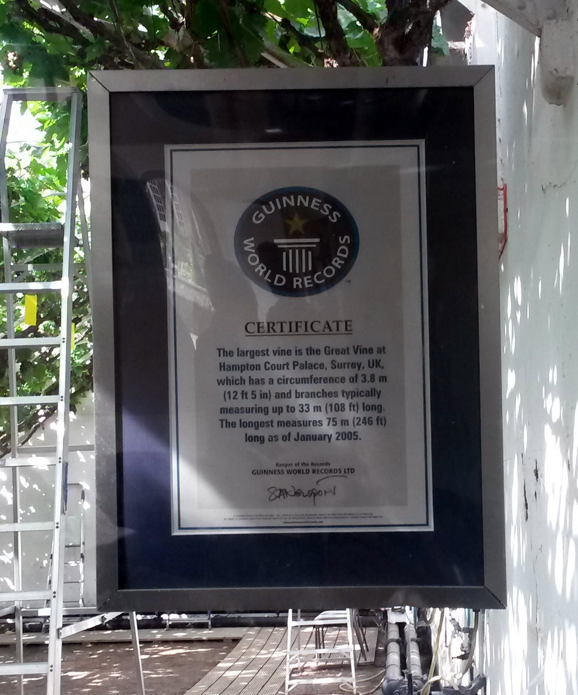 Guinness World Records certificate of largest vine.